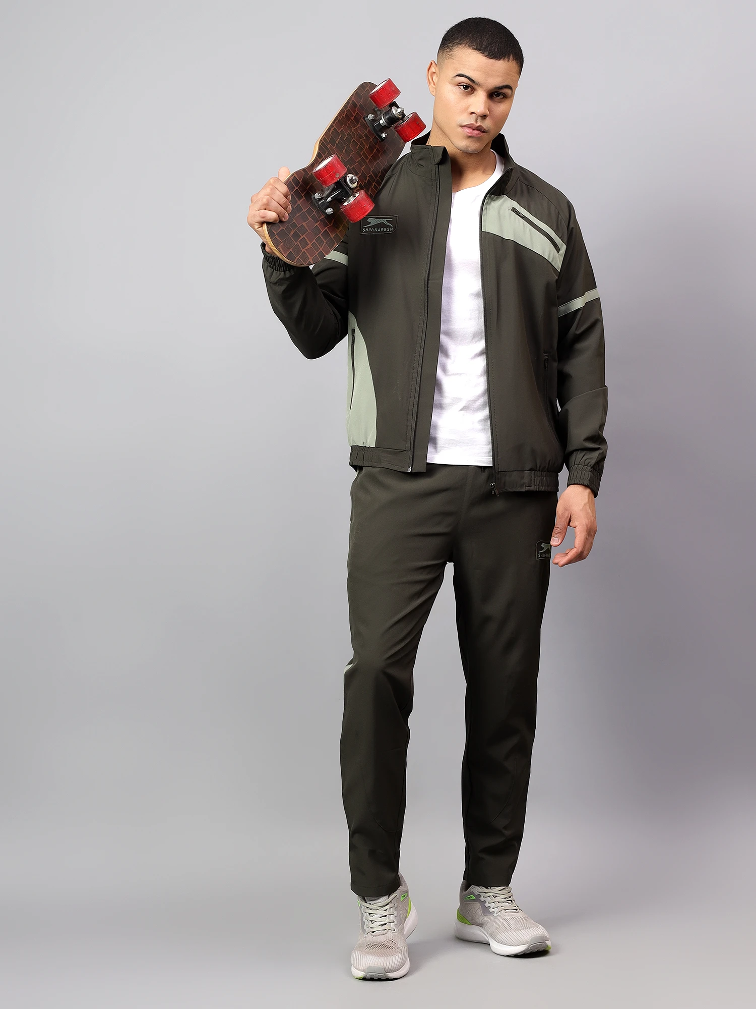 This track suit is designed for the modern man who values both functionality and fashion. The track jacket boasts a sleek silhouette and a full zip-front closure for easy layering. The NS Spandex fabric ensures a comfortable fit that moves with you, whether you're at the gym or out for a casual stroll. The elasticated waistband with an adjustable drawstring ensures a personalized fit, while the two-color design creates a cohesive and fashion-forward look.