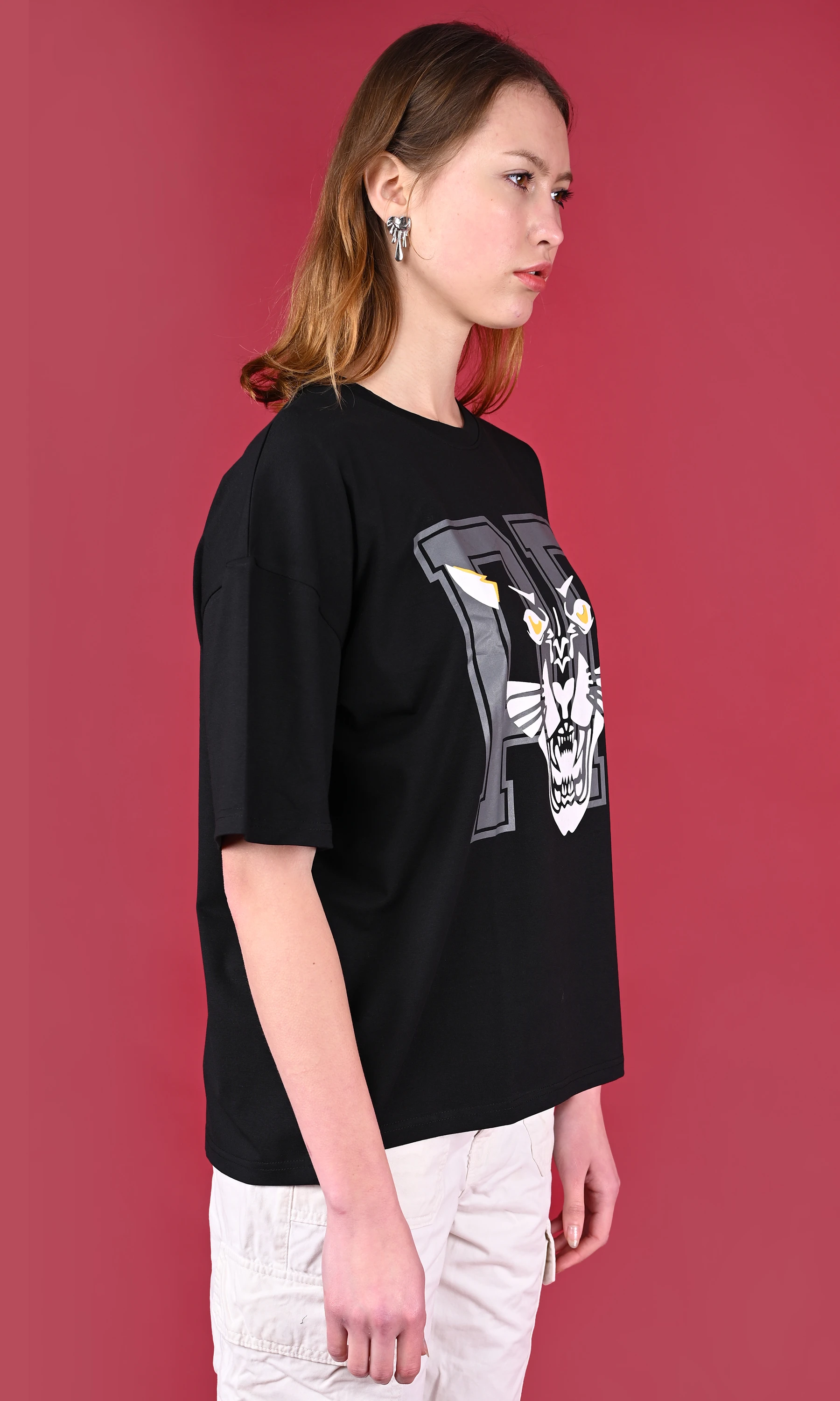 Make a style statement with this unisex oversized T-shirt. Made from breathable cotton lycra for maximum comfort. Half sleeves give a relaxed and sporty look. Ideal for daily wear, travel, or lounging.