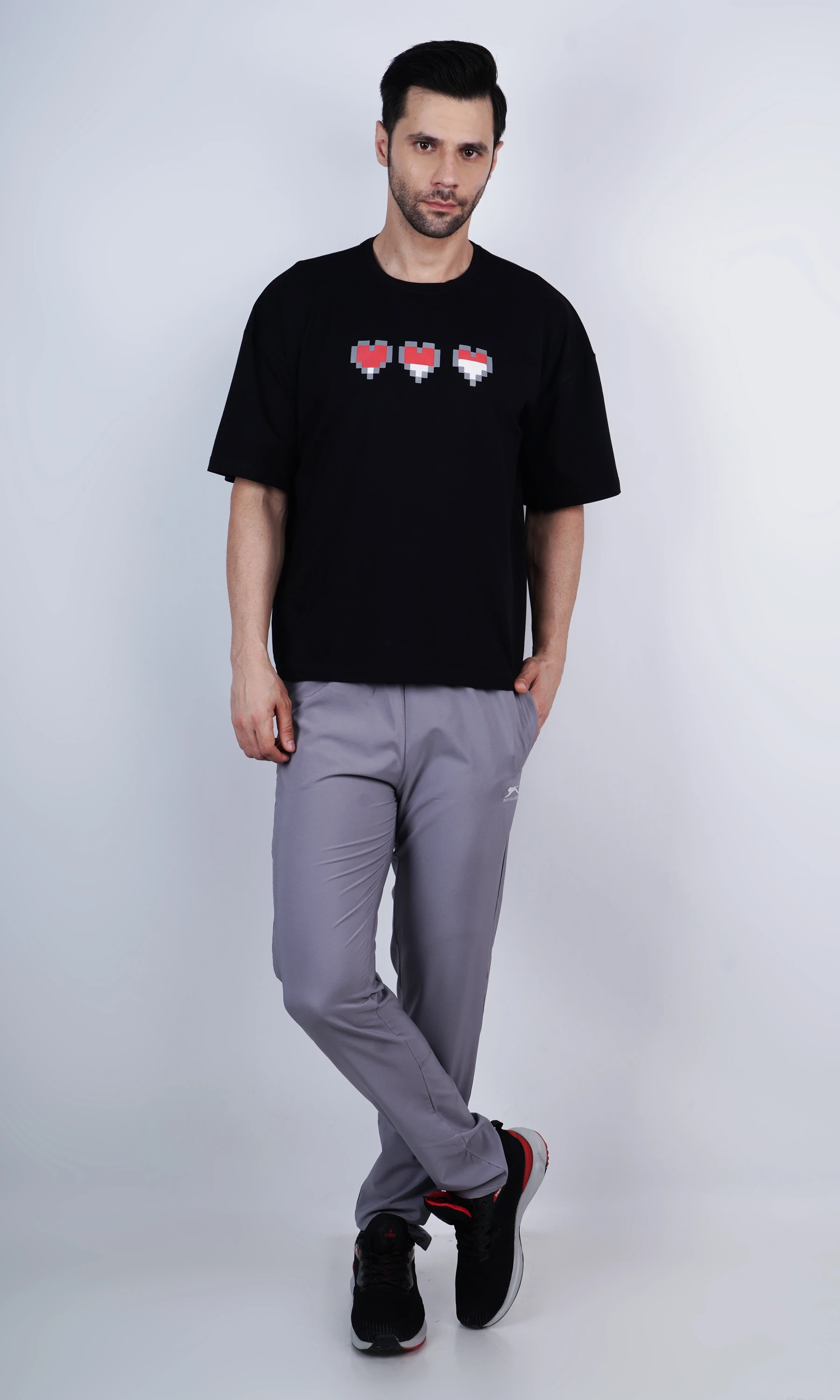 Unisex Pixal Heart Black Oversized T-Shirt