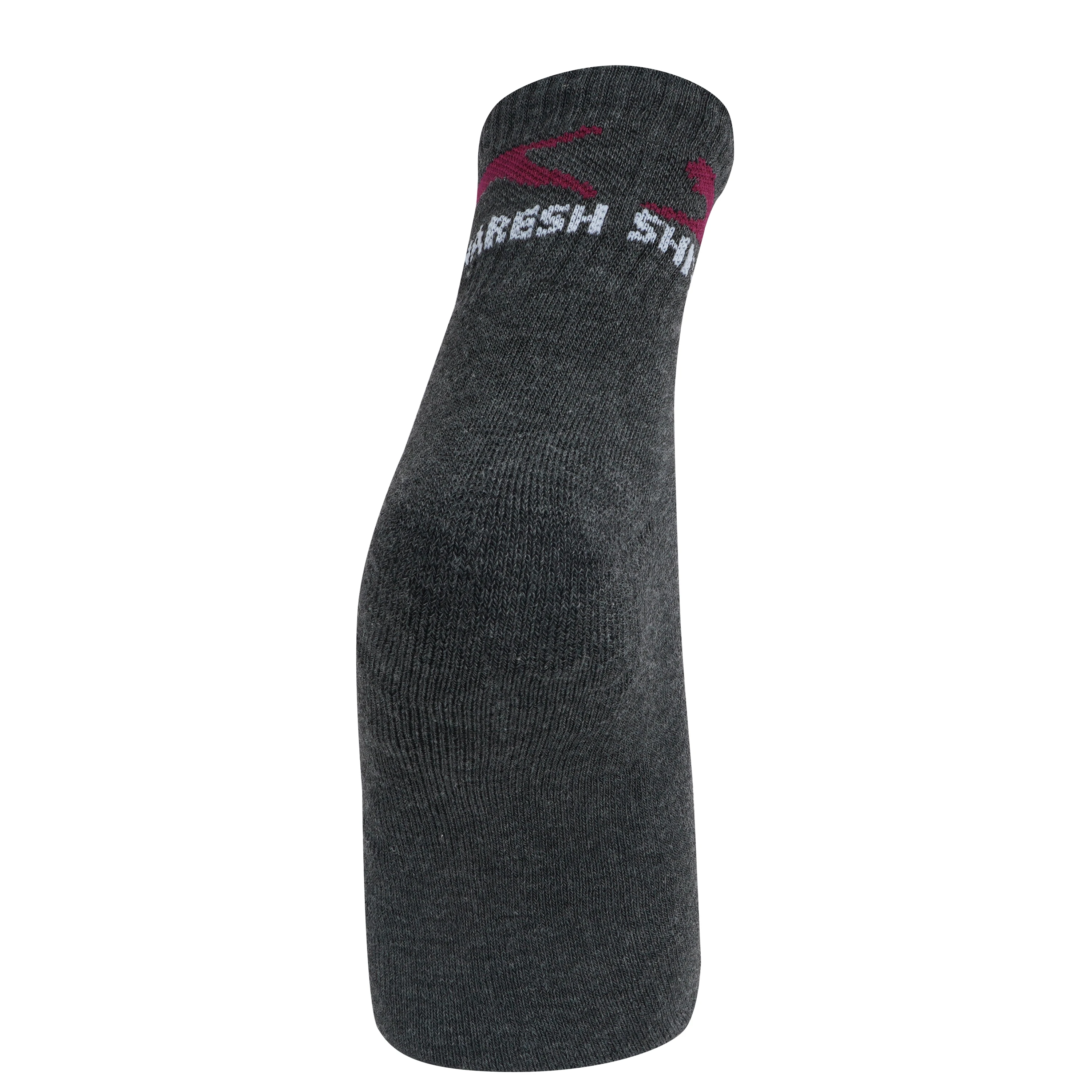 Step up your comfort game with these premium white ankle-length sports socks from Shiv Naresh. Crafted with soft, breathable fabric for all-day freshness and a snug fit, they offer excellent moisture control and cushioning. The ribbed top ensures a secure grip, while the bold Shiv Naresh branding adds a sporty edge. Perfect for workouts, training sessions, or everyday wear.