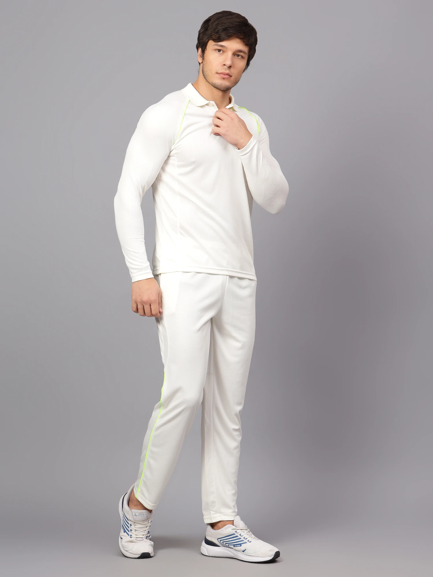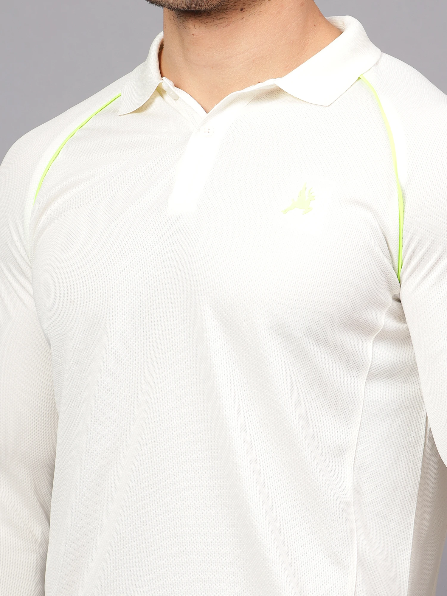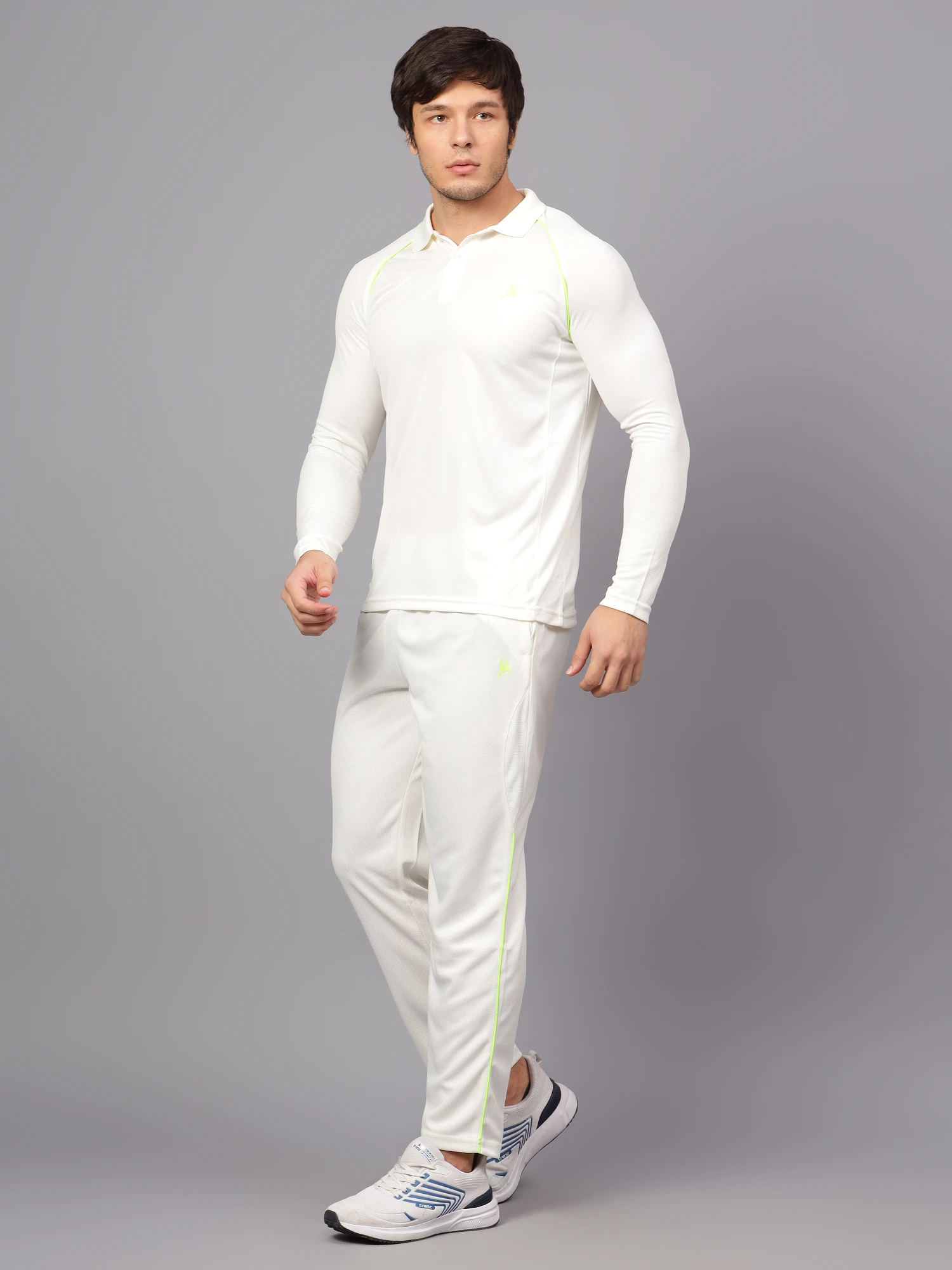 Accept the spirit of cricket and wear your enthusiasm for the game proudly. The fabric is designed with a knit innovation that ensures improved breathability, providing enhanced comfort during play. The fabric has a super stretch function that enhances mobility and flexibility.