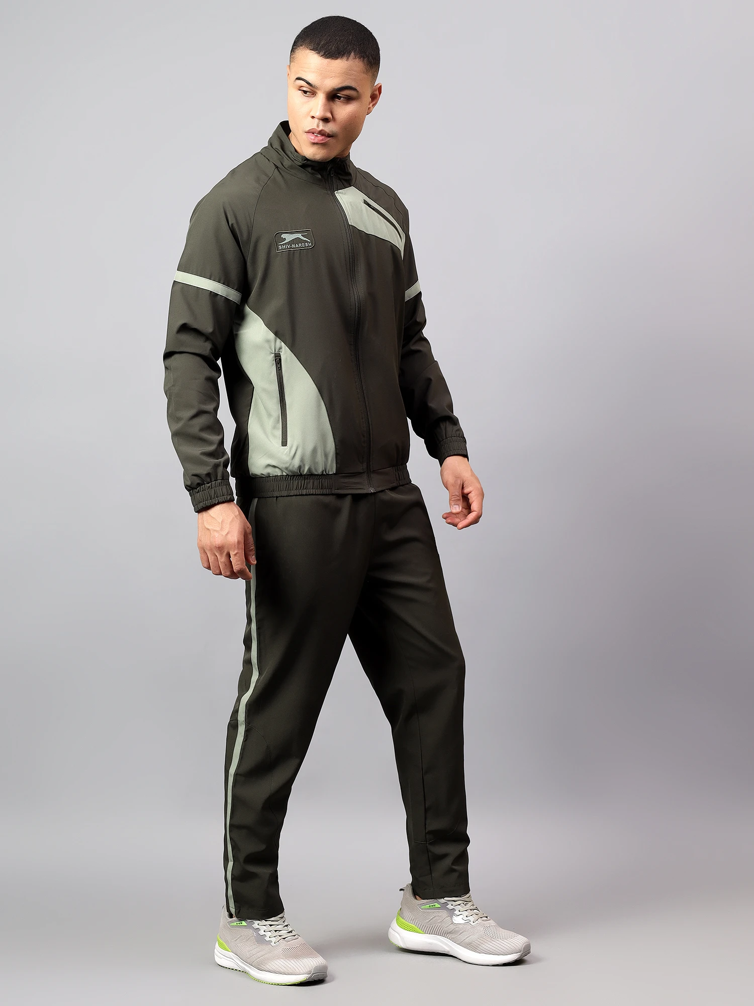 This track suit is designed for the modern man who values both functionality and fashion. The track jacket boasts a sleek silhouette and a full zip-front closure for easy layering. The NS Spandex fabric ensures a comfortable fit that moves with you, whether you're at the gym or out for a casual stroll. The elasticated waistband with an adjustable drawstring ensures a personalized fit, while the two-color design creates a cohesive and fashion-forward look.
