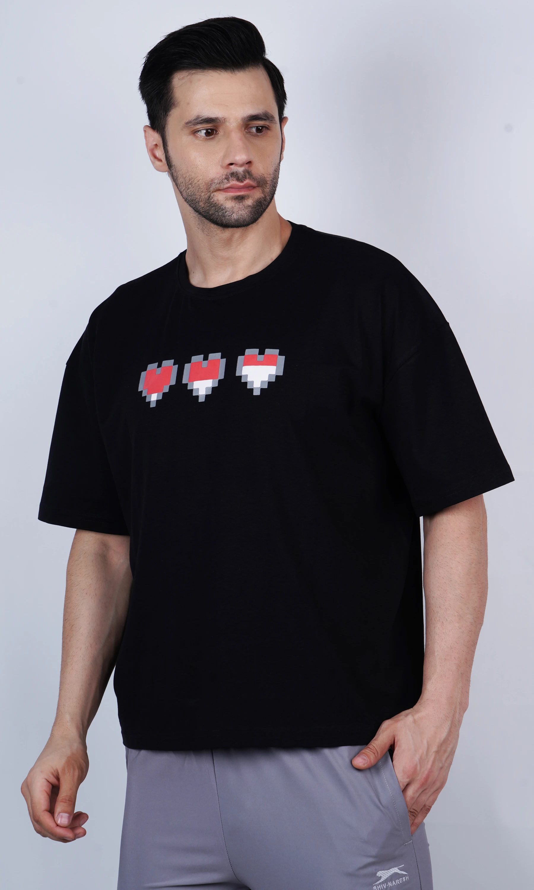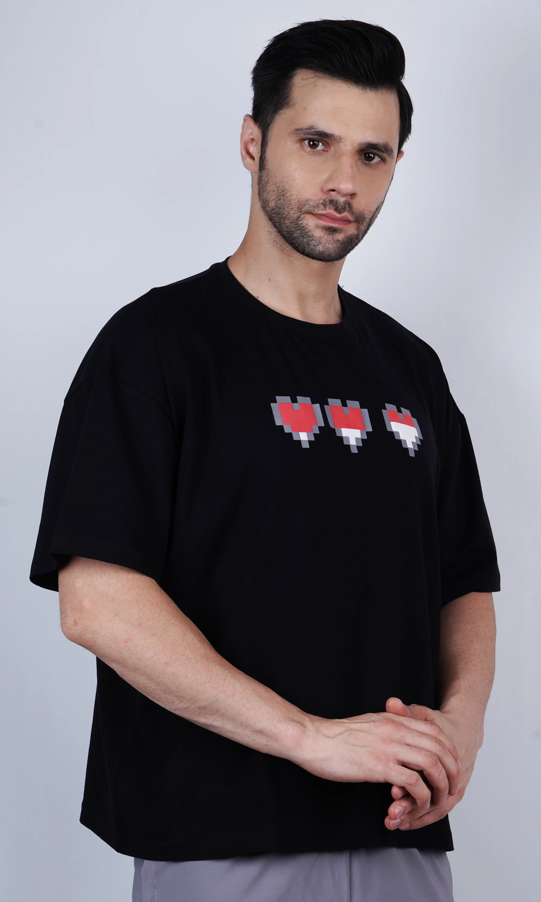 Unisex Pixal Heart Black Oversized T-Shirt